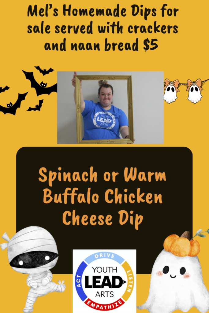 youthLEADarts youth mentor, Melanie Mcduff will be in the kitchen with her mom whipping up some of her delicious homemade dips to purchase too.